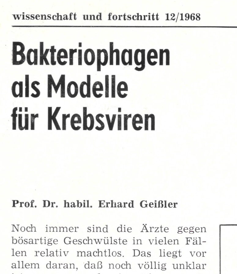 ... dass ich mich nach der Promotion entschloss, nicht mit Acetabularia oder mit keimfreien Tieren, sondern mit Bakteriophagen zu arbeiten.