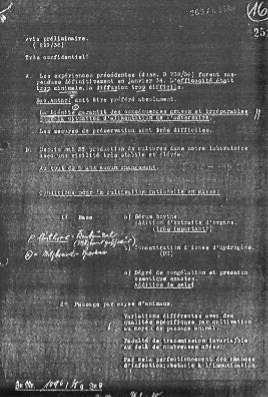 Den Deutschen fällt ein französisches Protokoll über Versuche mit Bacillus anthracis Hände - sie nehmen es aber nicht ernst.