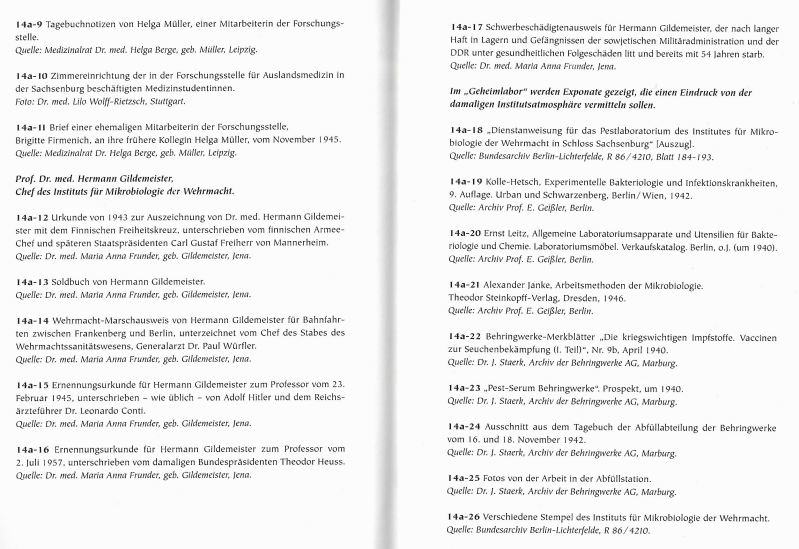 Quellen von Exponaten zum Institut für Mikrobiologie in Schloss Sachsenburg erwähnt im Ausstellungskatalog S. 58-59